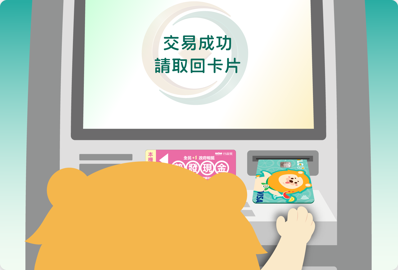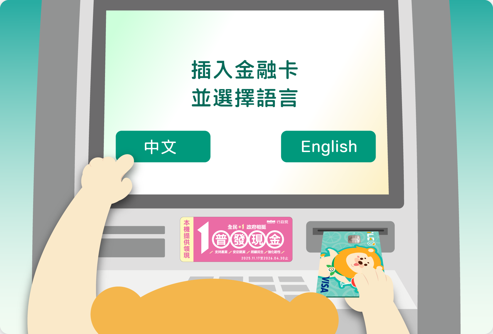 圖片-貼紙請至有張貼服務識別貼紙ATM,插入金融卡依照畫面顯示指示操作。